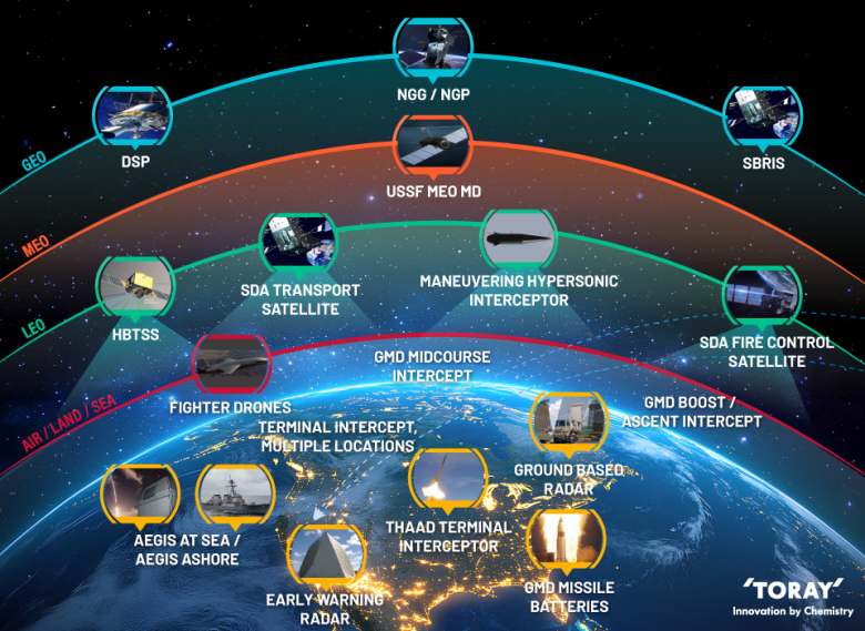 Each Toray division operates its own domestic supply chain from materials to part manufacturing, integrated into a larger comprehensive network, and supported by a global team of experts with thorough knowledge in space & satellite, launch & missile, unmanned aerial vehicles (UAV), drones, radomes & antennas, rotorcraft, among other adjacent applications for rapid defense architecture deployment with decades of proven support within the defense sector. When it comes to the United States GDA program, Toray is one of the few US-based companies that has a large enough manufacturing capacity and the extensive portfolio of materials to cover the entire application set for Golden Dome.